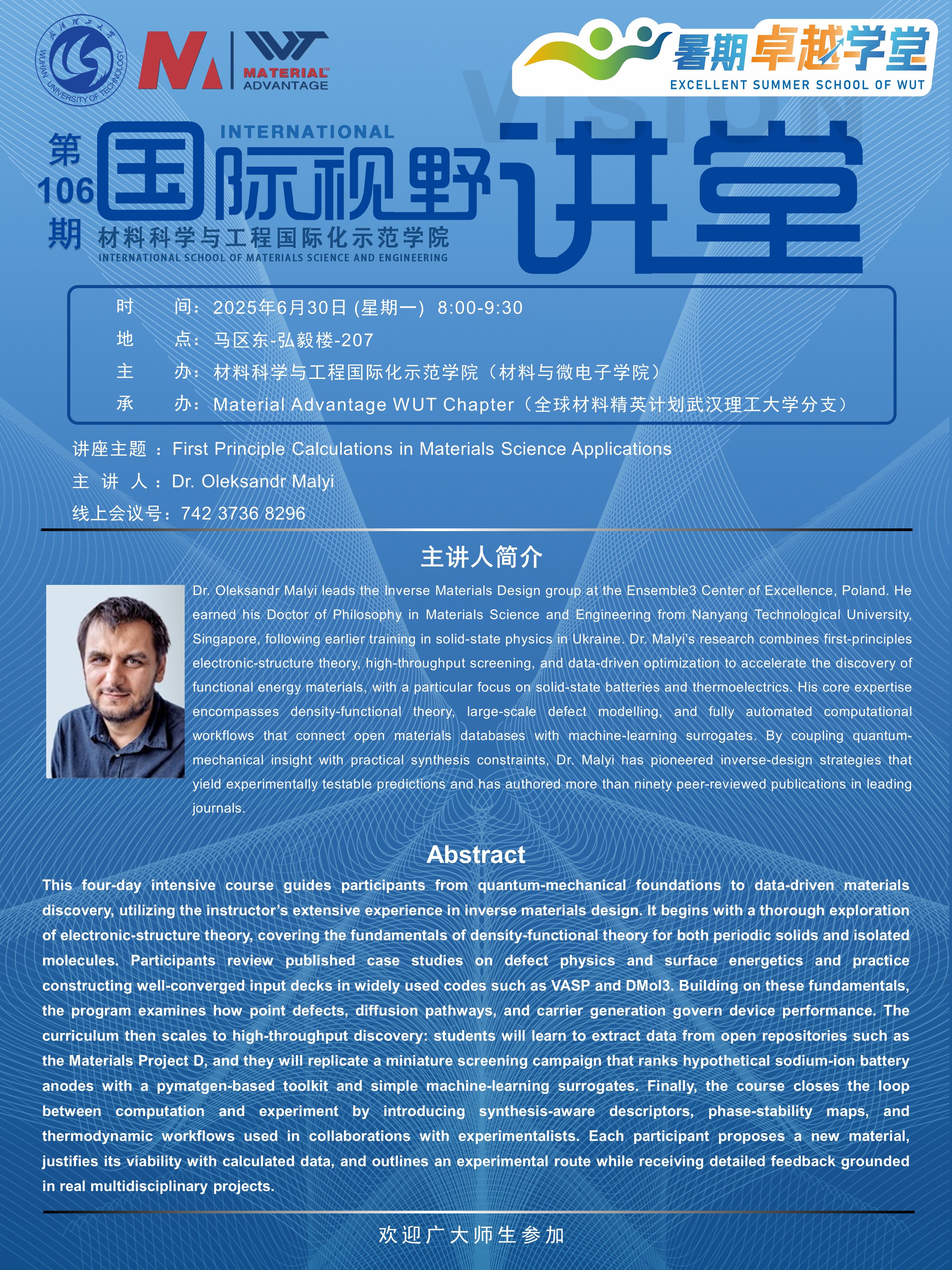 【国际视野讲堂】第106期:First Principle Calculations in Materials Science Applications