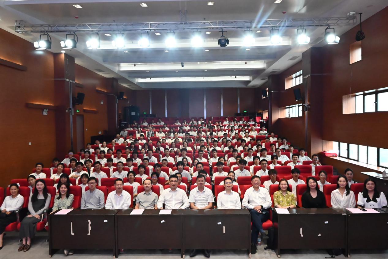 见面会结束后,全场师生合影留念。祝愿2025级师生在材料示范学院(微电子学院)这片沃土上扎根、生长,让青春的汗水成为养料,成长为深耕专业、心怀家国的有为青年。