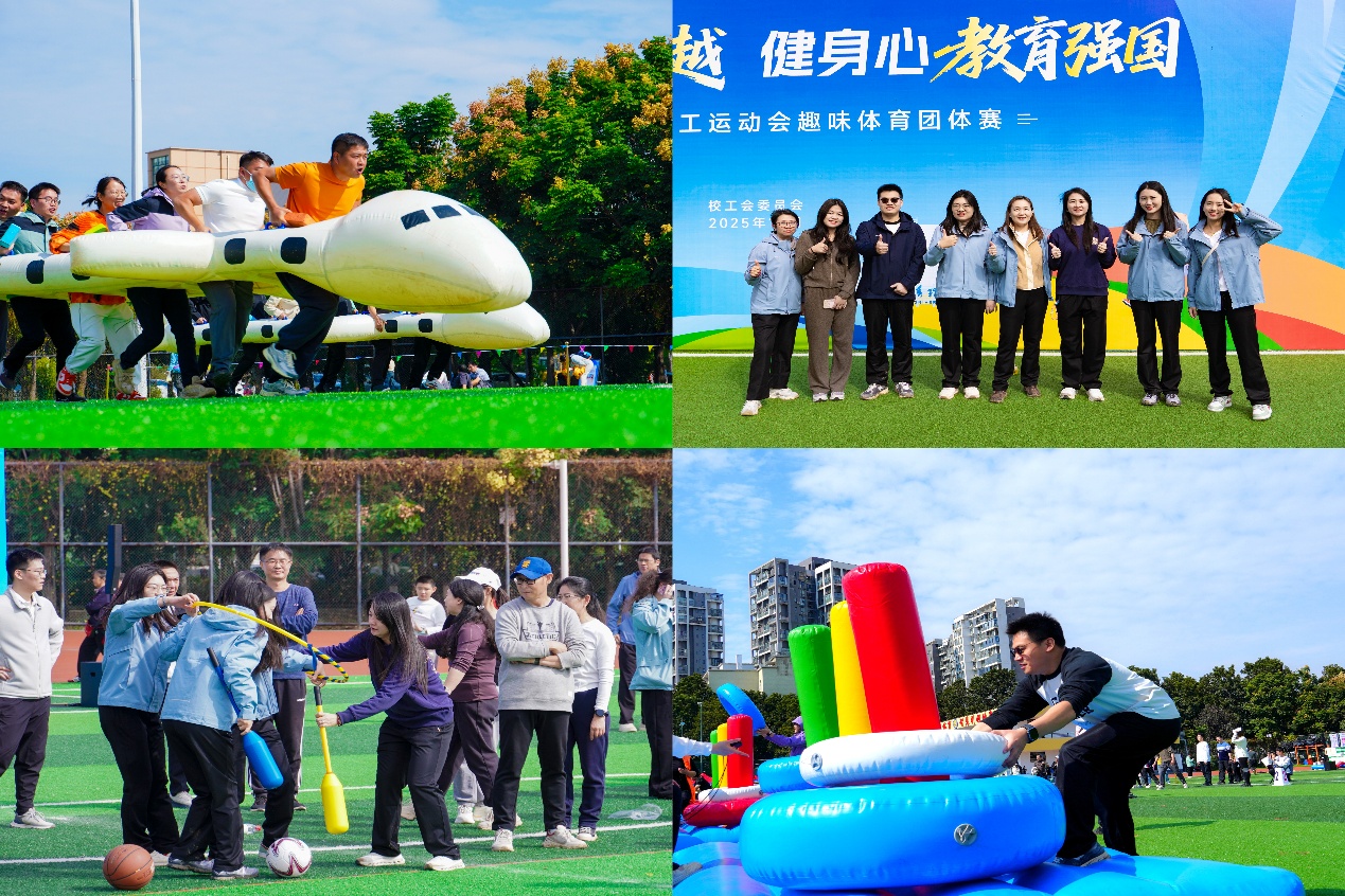 教职工运动会趣味体育团体赛在副田径场同时举行。学院教职工积极参与,齐心协力完成汉诺塔、合作共赢等团体项目,展现学院老师们团结拼搏的精神风貌,为此次运动会增添一番别样的风采。