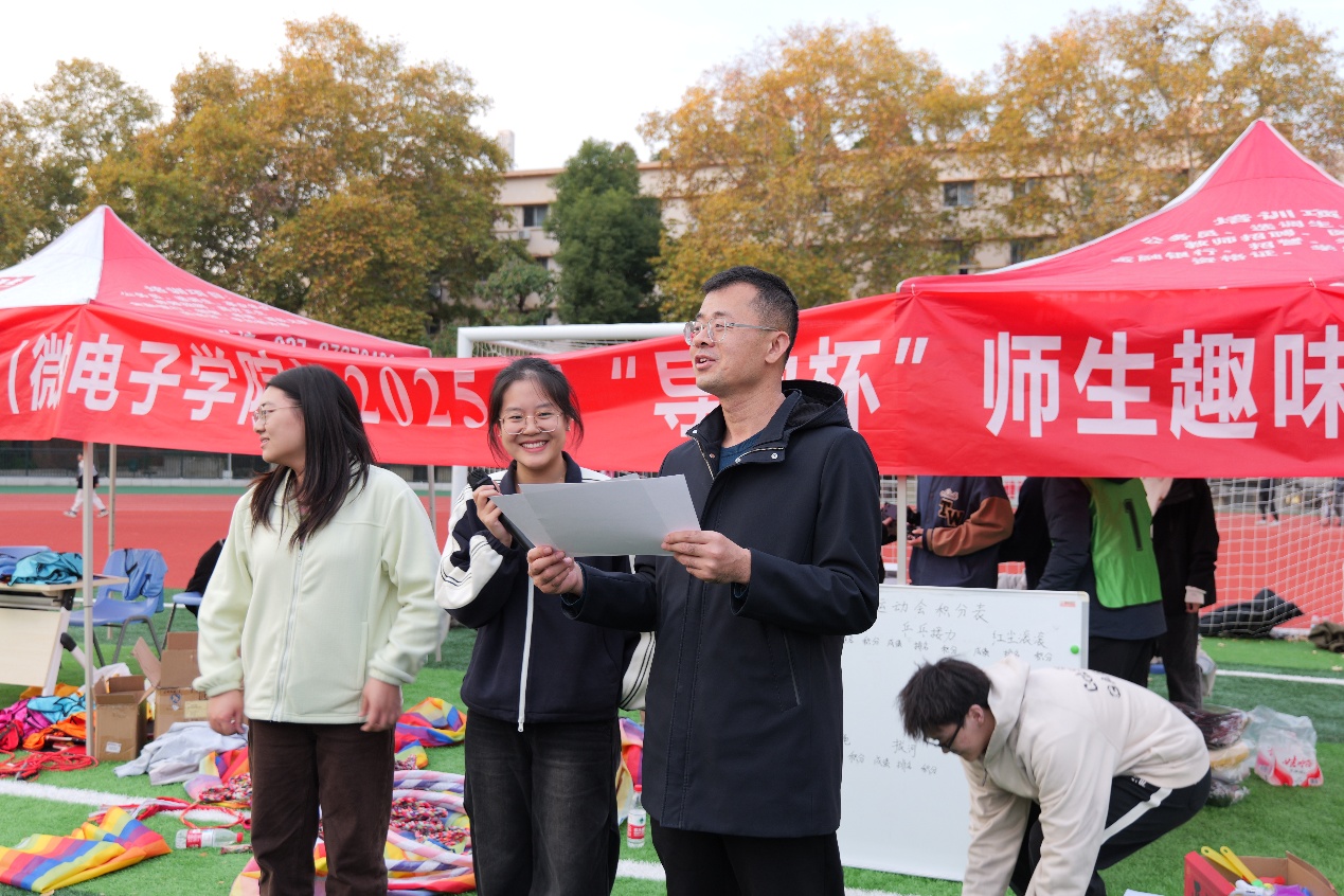 秋高气爽,阳光和煦。11月20日下午,材料示范学院(微电子学院)在狮城社区体育场成功举办第二届“导学杯”师生趣味运动会。学院党委书记严岿、各导师团队代表、教学学工管理教师以及各年级学生共同组队参与,在轻松愉悦的氛围中增进交流,凝聚合力。