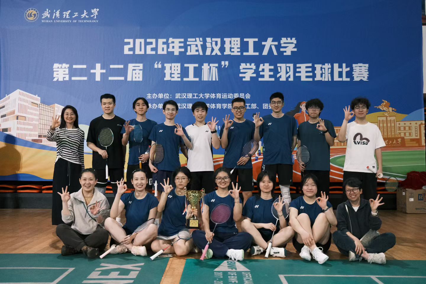 4月11日,武汉理工大学第二十二届“理工杯”学生羽毛球比赛于南湖羽毛球馆开赛。材料示范学院(微电子学院)羽毛球队获得第三名,创历史最佳战绩。